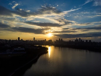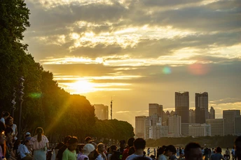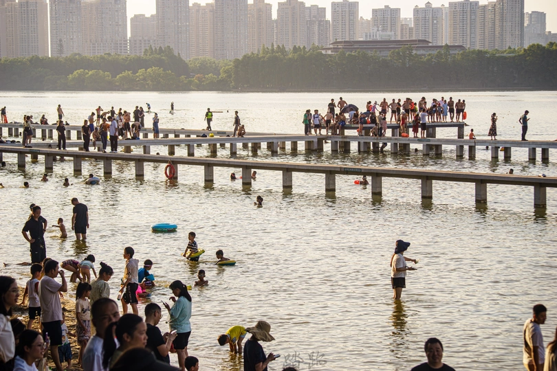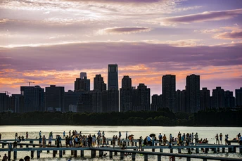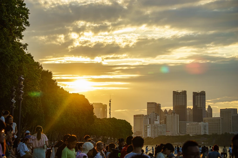拍摄于2024年7月 暮色如泼墨般浸染天际时,人们正沉醉于七月特有的温柔光晕中。海天相接处,晚霞将最后一抹胭脂色揉碎在粼粼波光里