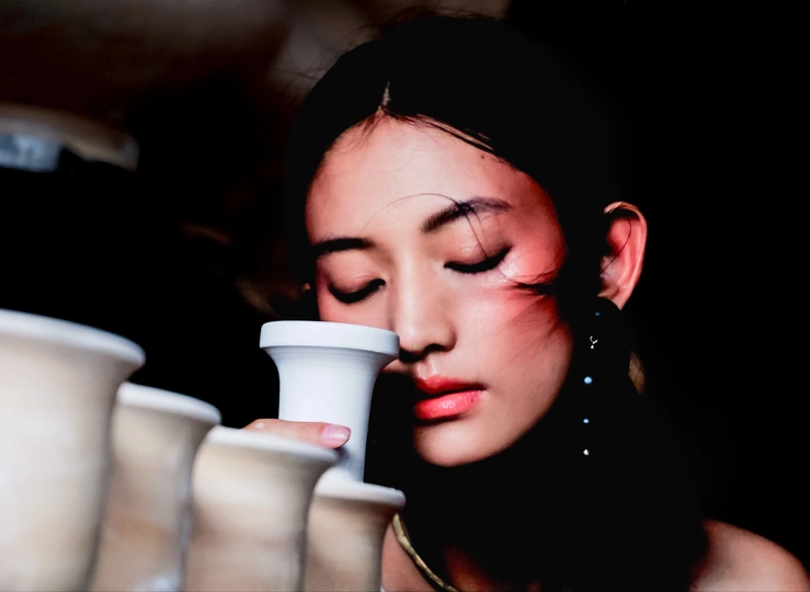 当呼吸与光影同频,寂静便有了形状。 她以指节托起一簇未落的月光, 深色世界里, 唇上的一抹红是唯一醒着的诗。