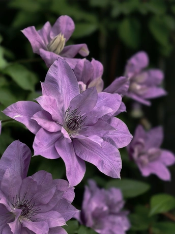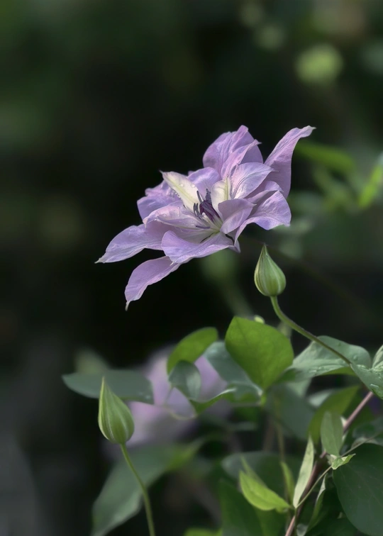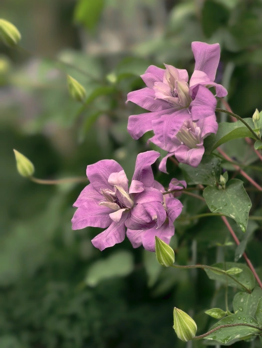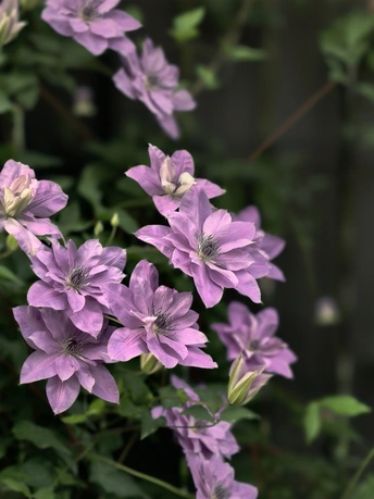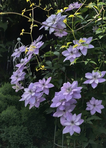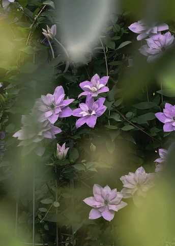 是一种半重瓣铁线莲,皮实,开花性很好。倒影的花朵颜色会随着开放时间和天气状况深浅变换,非常迷人。