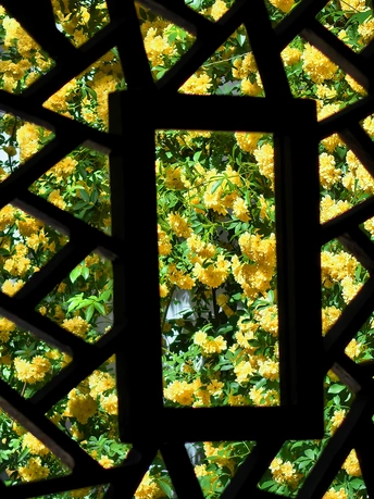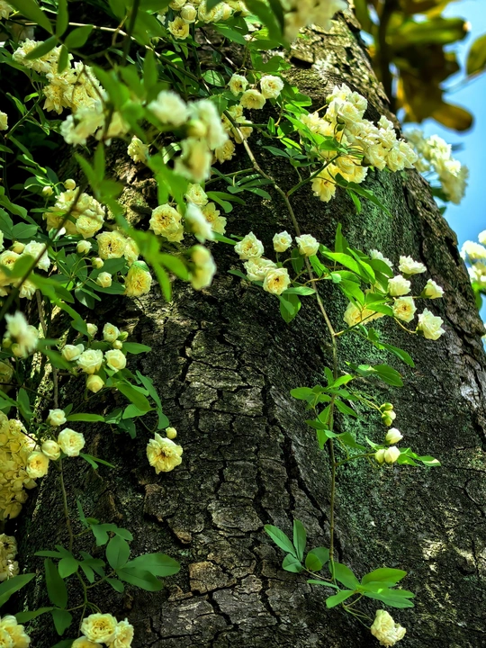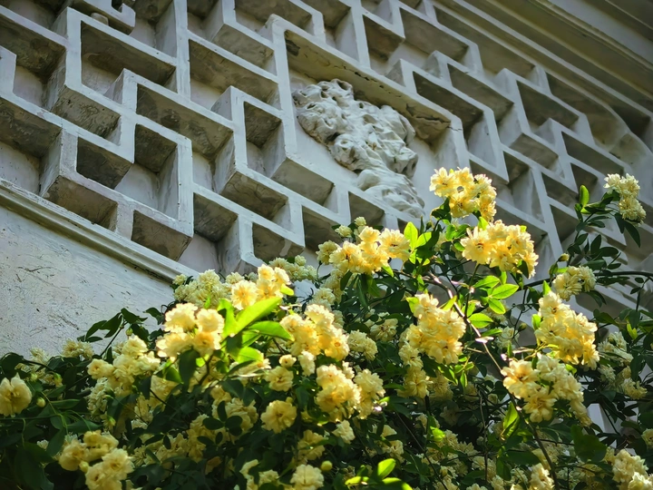 踏入苏州园林,便似闯入了一场绚烂的梦。黄木香如金色瀑布,从花窗倾泻而出,满溢着蓬勃生机。花枝在光影里摇曳,每一朵都像是阳光凝萃。抬眸间,飞檐翘角隐于枝叶后,古朴与烂漫交织。树干上,黄木香攀附生长,似在诉说岁月温柔。白墙花影,皆是自然绘就的诗画,于无声处,将春日的绮丽娓娓道来。
