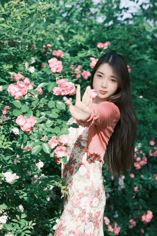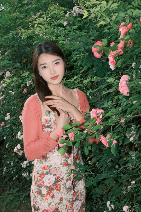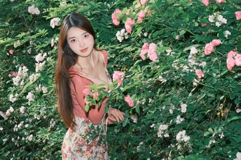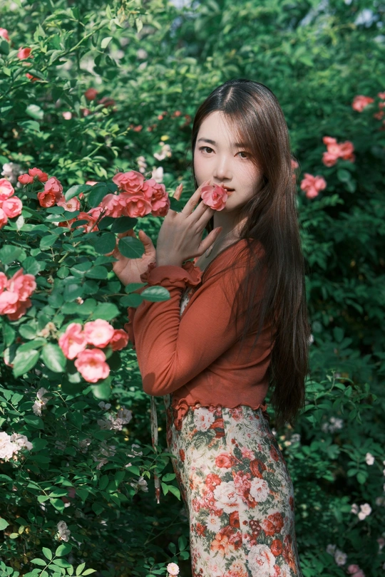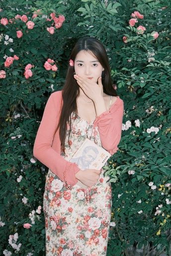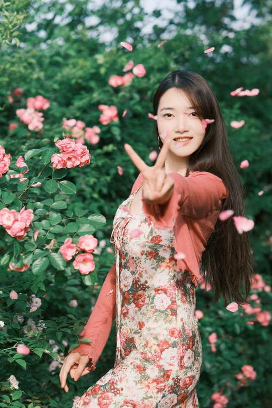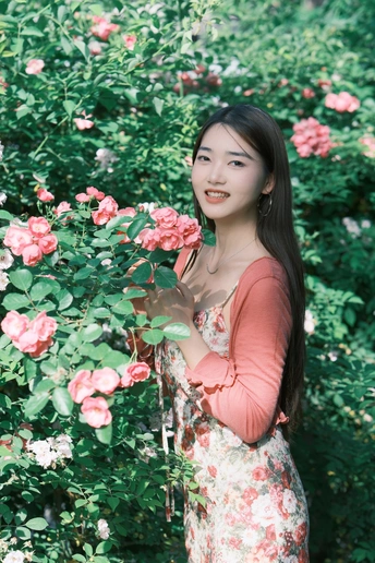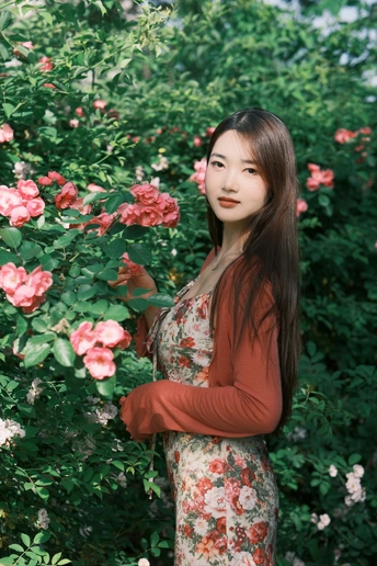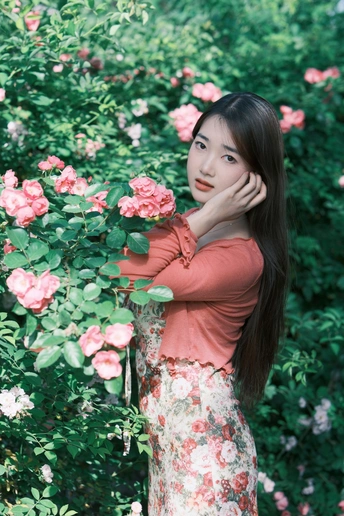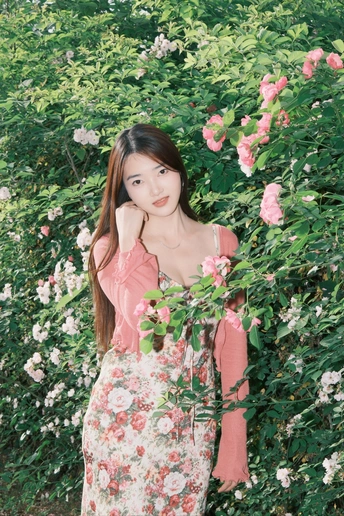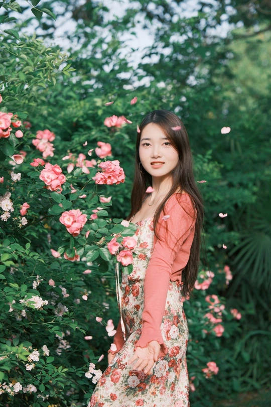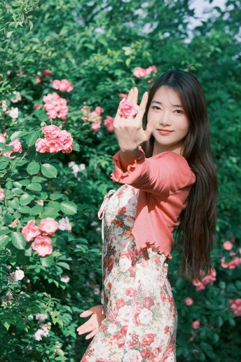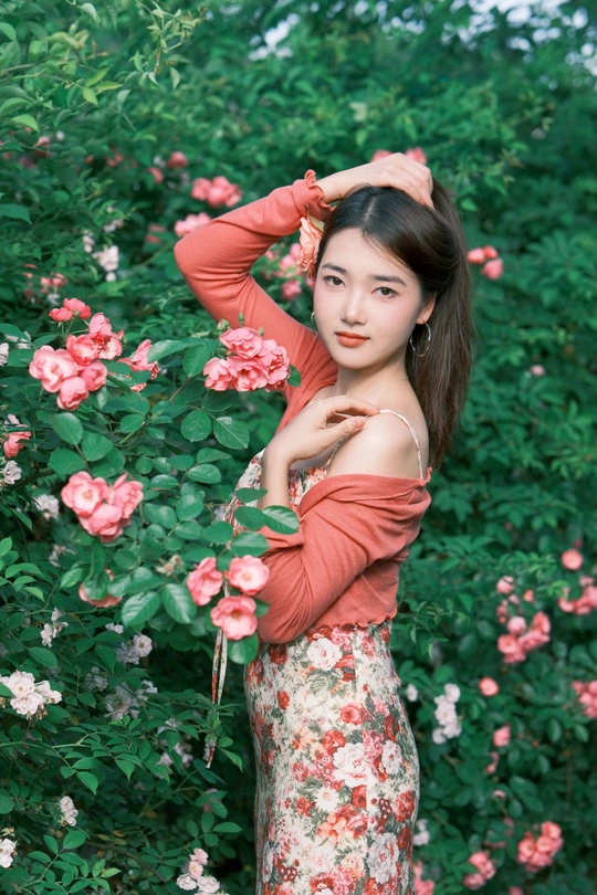 小碎花裙和红色蔷薇真的太搭了!