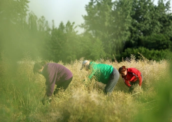 半退休的三妯娌,利用周末时间,采收田间的油菜籽。 虽然在市区工作与生活,她们对土地和农活保持深度的热爱, 而为了生计。 拍摄于扬州郊区。