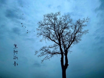 冬日的冷蓝天空下,寒树兀立,枝桠如嶙峋瘦骨,在寂静中伸展。飞鸟成群掠过,似时光的剪影,转瞬即逝。“寒树孤景”四字,宛如一声喟叹。这树,多像尘世中踽踽独行的我们,于喧嚣外坚守,于清冷中守望。在繁华易逝、人潮来去间,孤独是底色,却也是心灵归所。我们在各自的人生里栉风沐雨,像树扎根,像鸟寻途,于这苍茫天地,叩问生命的意义,找寻灵魂的归依。