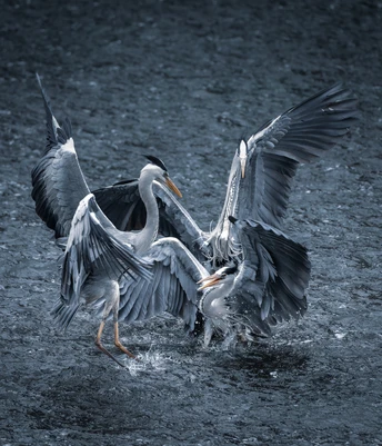 在当今这个时代,我们被钢筋水泥所包围,很难看到那些富有生命力的场景,我们似乎李自然太远了。但是在这个春天,在成都市,九眼桥附近,我们却可以看到这样的场景——一群苍鹭,在水坝前为了一条小鱼打架不停,或者在水中站立许久,眼睛紧盯水中,紧绷肌肉,随时准备用那长而尖利的喙插进鱼的身体,而让自己饱餐一顿。而我,则是要记录下这样富有生机与活力的一幕。成都人民看到此的时候,不会忘记与自然的联系。