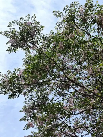 散步时被阵阵香气吸引,发现了这种树。不认识,一查才知道是楝树。