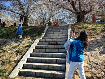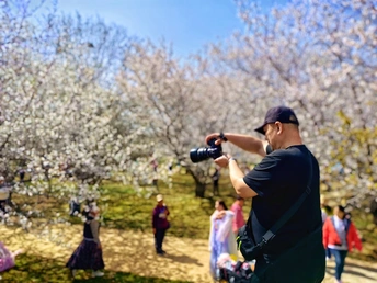 一年一度的樱花季,吸引大量的游客,摄影师们各显神通,记录这美好的瞬间。