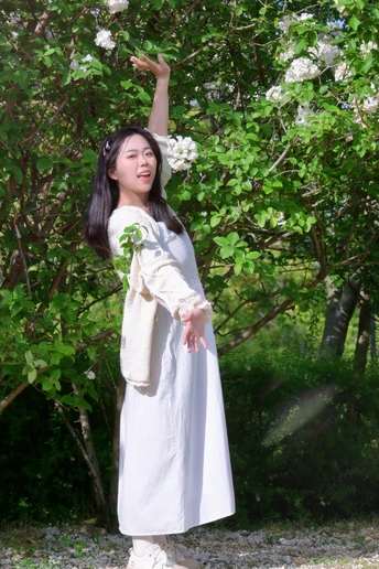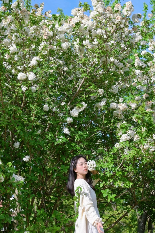 “当木绣球结成云朵的形状, 我们提着裙摆跑进了 这个春天最柔软的镜头里。”