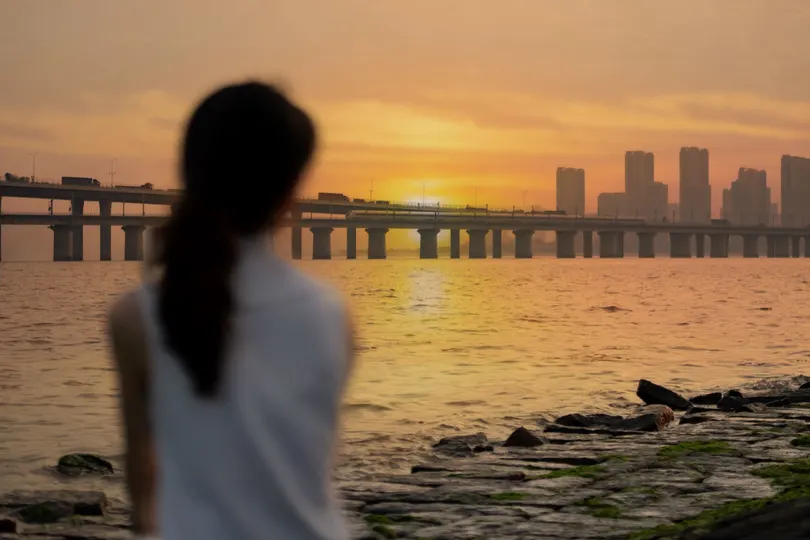 夕阳下,厦门海上列车