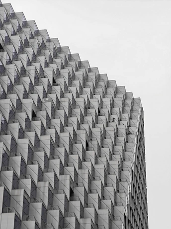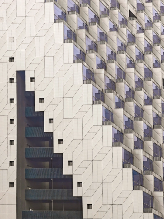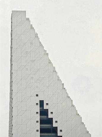 当阳光亲吻棱角分明的玻璃幕墙,杭州的光棱建筑群化作巨型几何雕塑。摩天楼以钻石切割般的锋锐线条刺破云端,低层建筑则用错落叠片编织光影迷宫,冷硬的金属与流动的霞光在镜面上跳起探戈。让钱塘江畔的现代建筑成为会呼吸的艺术品——既是科技铸就的结晶,亦是自然馈赠的画布。