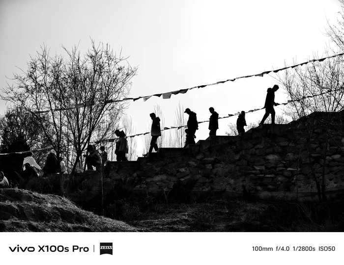在熬包的长长的台阶上,人们上上下下,在阳光中,形成剪影,似乎在诉说着人生故事。