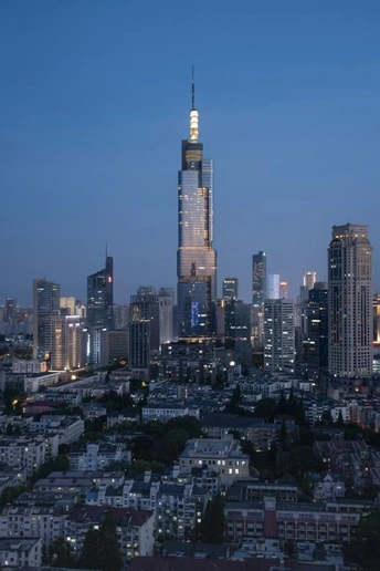 紫峰大厦,最正的紫峰大厦机位,夕阳下的反光十分好看