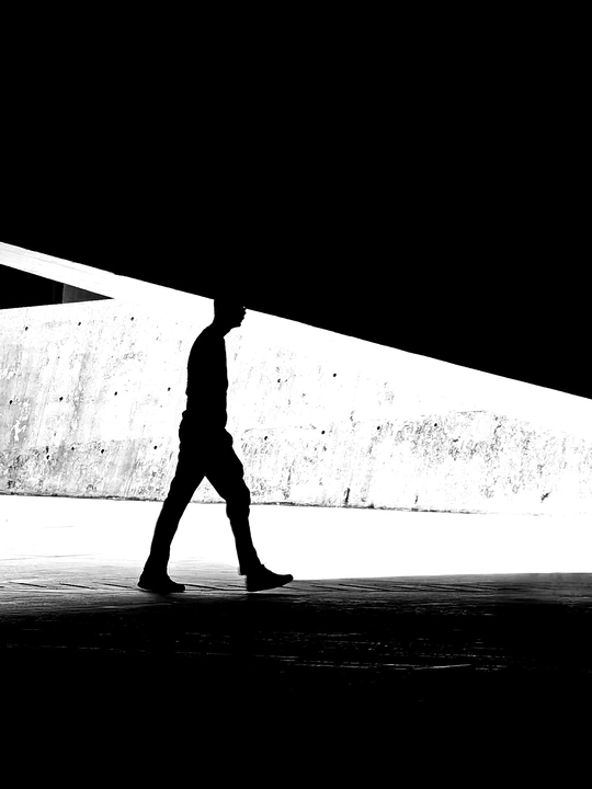 黑暗围裹,一束光破出。他的身影被勾勒,于明暗间穿行。 脚步踏响寂静,似在向未知索问。这是独属于他的征途,无关喧嚣,只在光影交错里,找寻前行的答案。