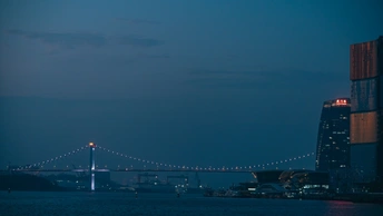 蓝调下的港口