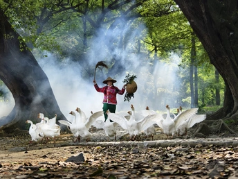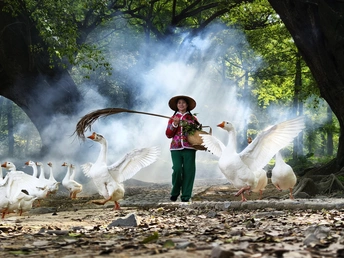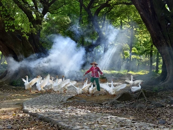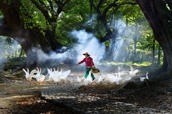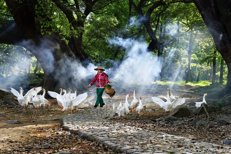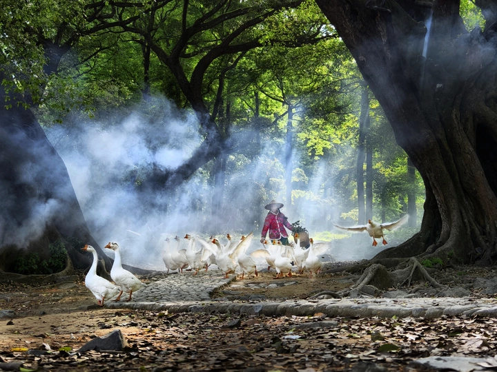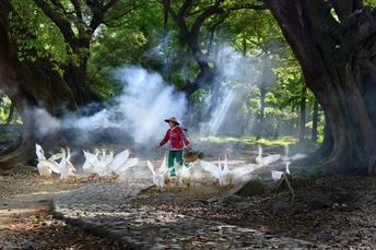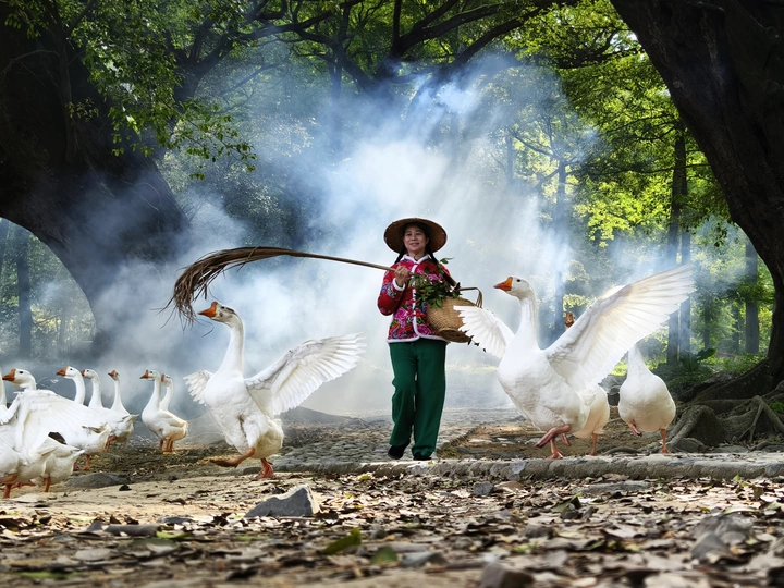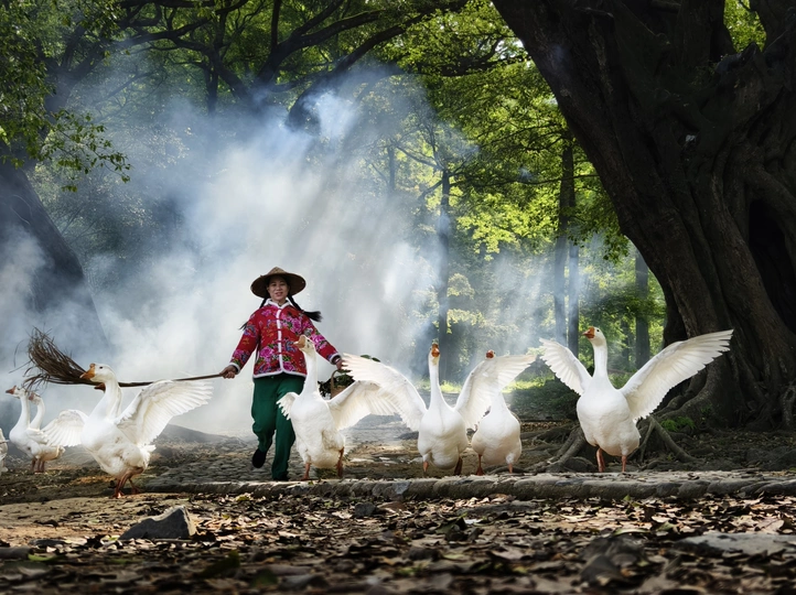 赶鹅的姑娘,把岁月走成一首循环的牧歌~~