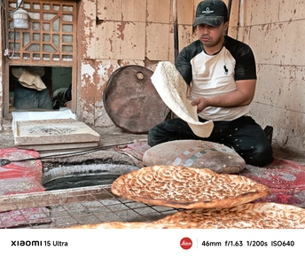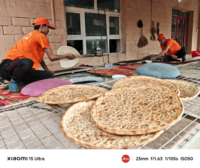 库车街头,那大大的馕极具特色!比盘还大的面饼,印着独特花纹,在馕坑中烘烤。咬一口,麦香四溢,满满的都是新疆的豪迈与热辣风情!