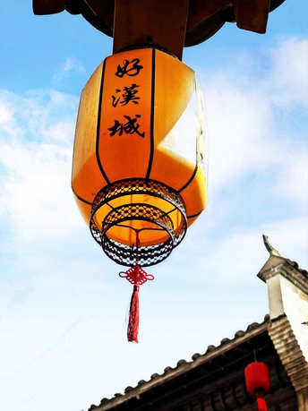 蓝天白云间,“好汉城”灯笼高悬。古朴建筑相伴,红流苏摇曳。仿佛能看见往昔豪杰身影,正邀人走进这充满故事的天地。