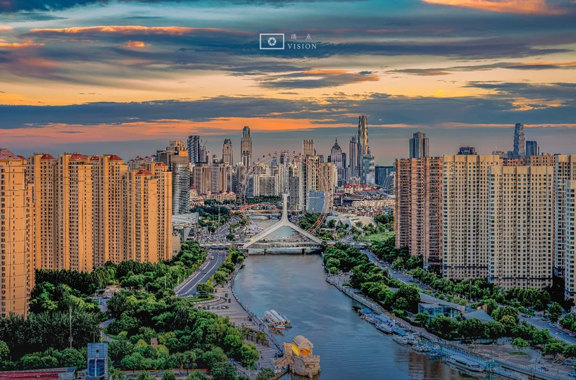 捕捉色彩斑斓的天空,映照天津地标建筑天津之眼,如漫画般惊艳。