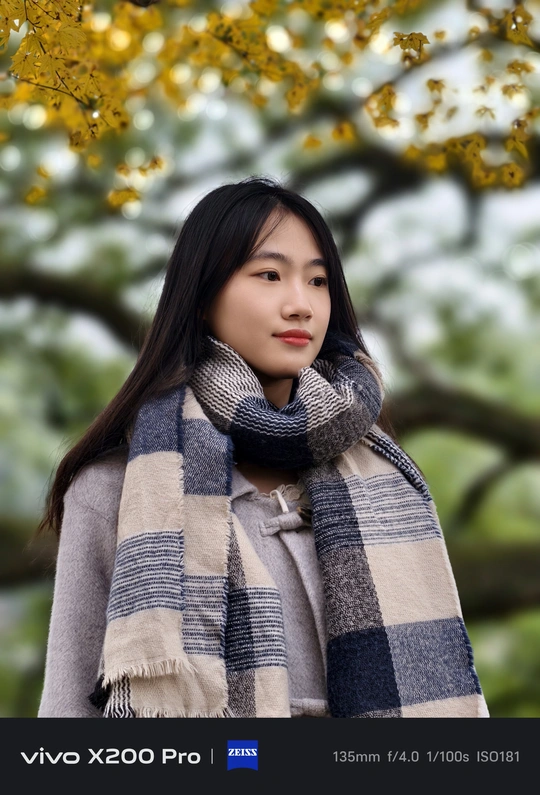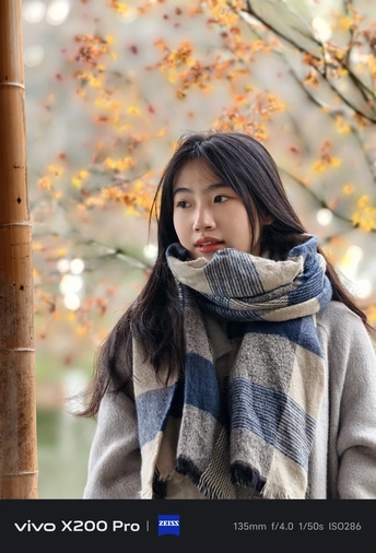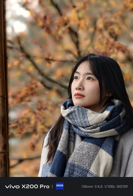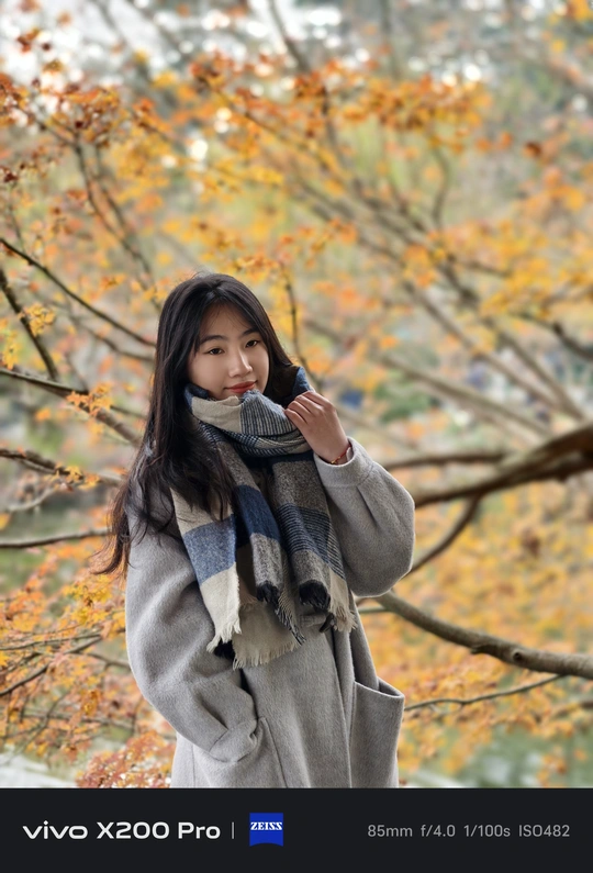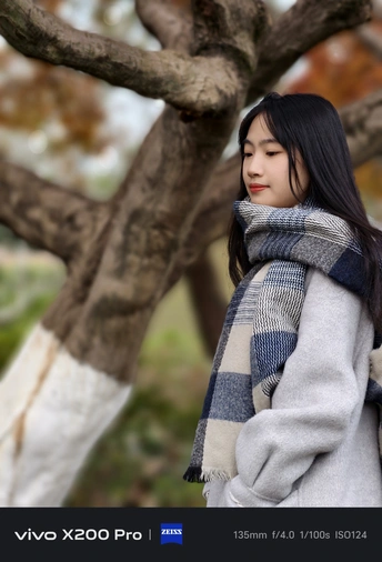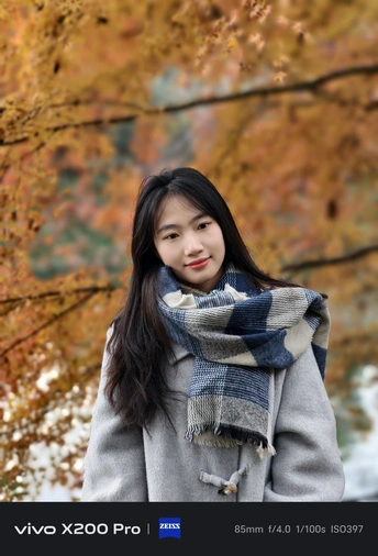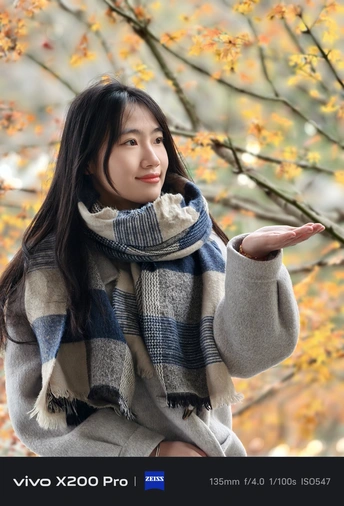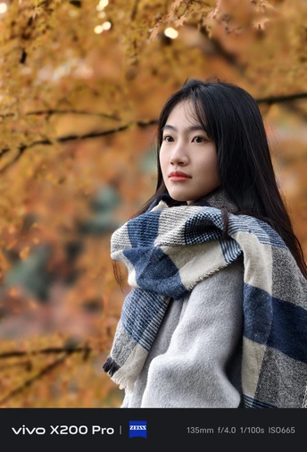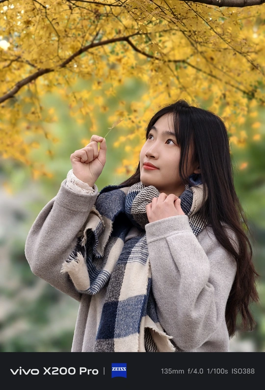 秋风轻拂,枝头的黄叶窸窣作响。她裹着温暖的围巾,静静伫立。抬手间,似欲接住一片秋意,眸光里藏着温柔与眷恋。这一刻,时光慢下脚步,秋的韵味在她身旁晕染,成了岁月里最美的诗行。