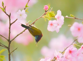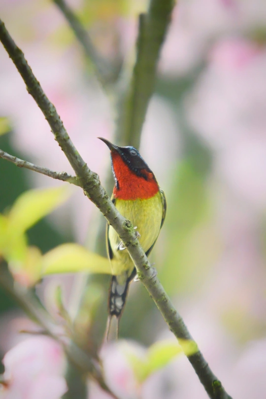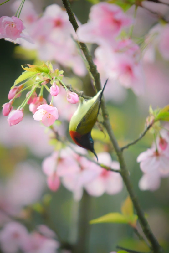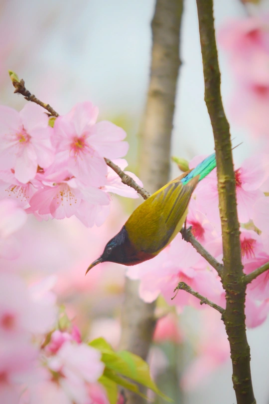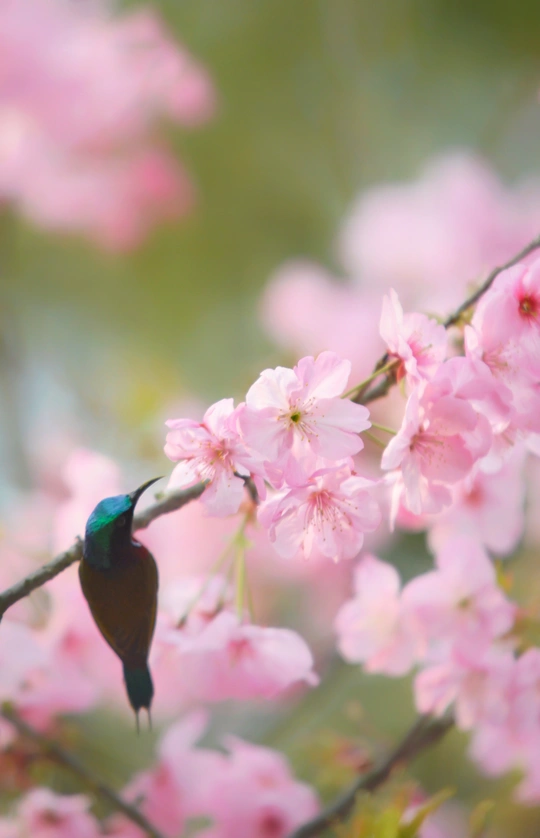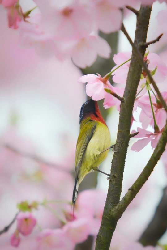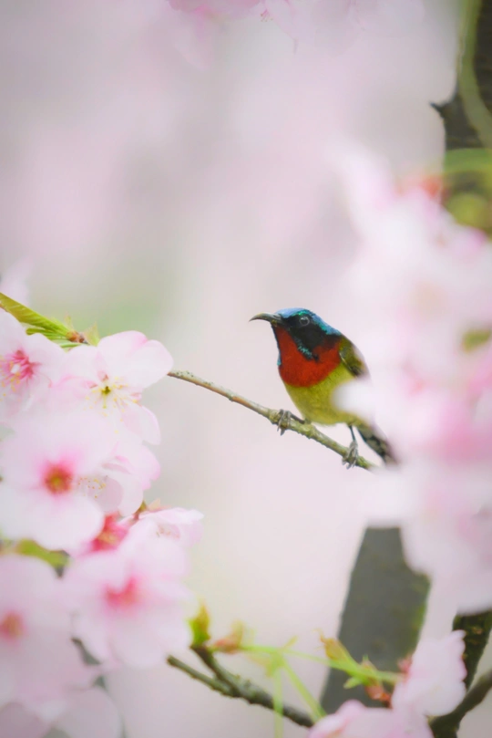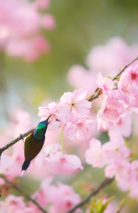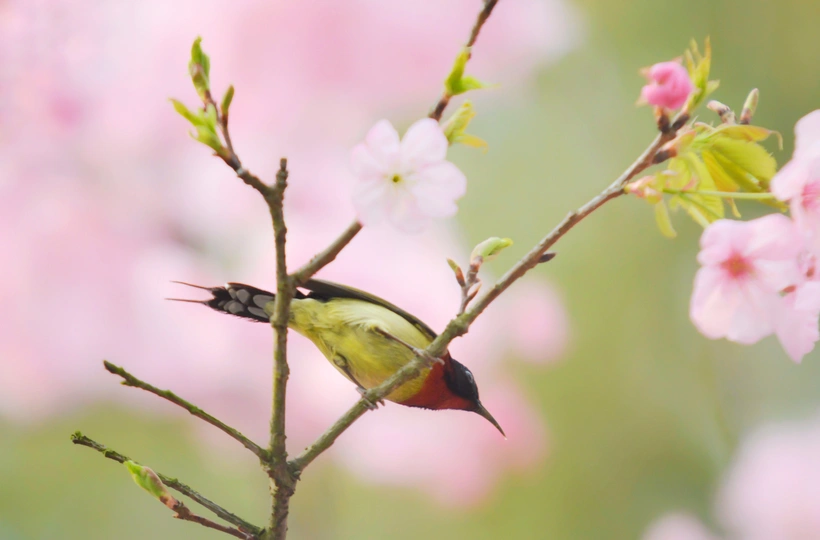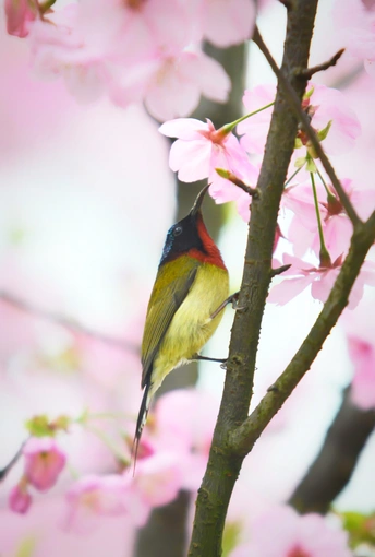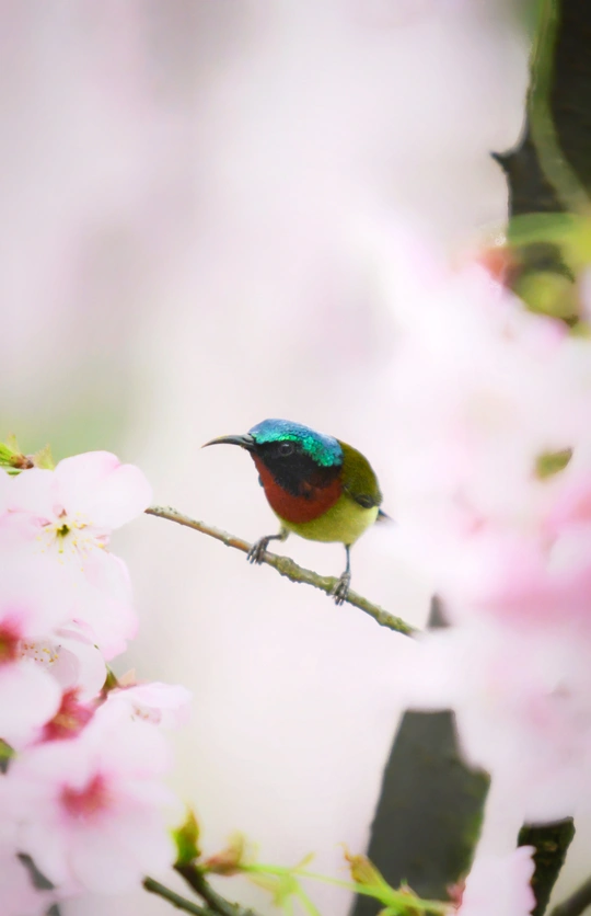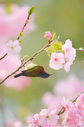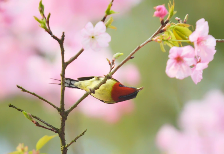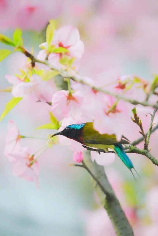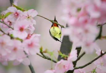 樱花树下太阳鸟