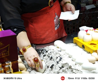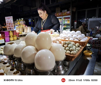和田夜市有个超吸睛蛋摊!老板娘妆容明艳,大金链子、宝石戒指耀眼夺目,气场“豪横”。她手持鸵鸟蛋,动作娴熟。这蛋摊,在她的装点下,仿佛散发着“富贵”气息。一个个白白胖胖的鸵鸟蛋、鹅蛋、鸡蛋、鸟蛋整齐码放,好似在等着食客开启一场独特的美味之旅,烟火气与她的独特风采交融,让人过目难忘!
