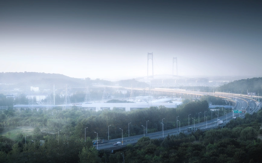 迷雾为这片天地披上一层神秘的面纱,在桥塔间萦绕,此刻的南京长江四桥就仿佛一条通往异世界的天路,神秘而让人神往