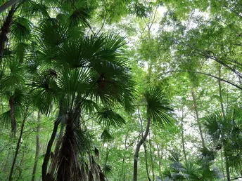 在森林中抬头仰望天空,那是由各种树组成的绿色的烟花……