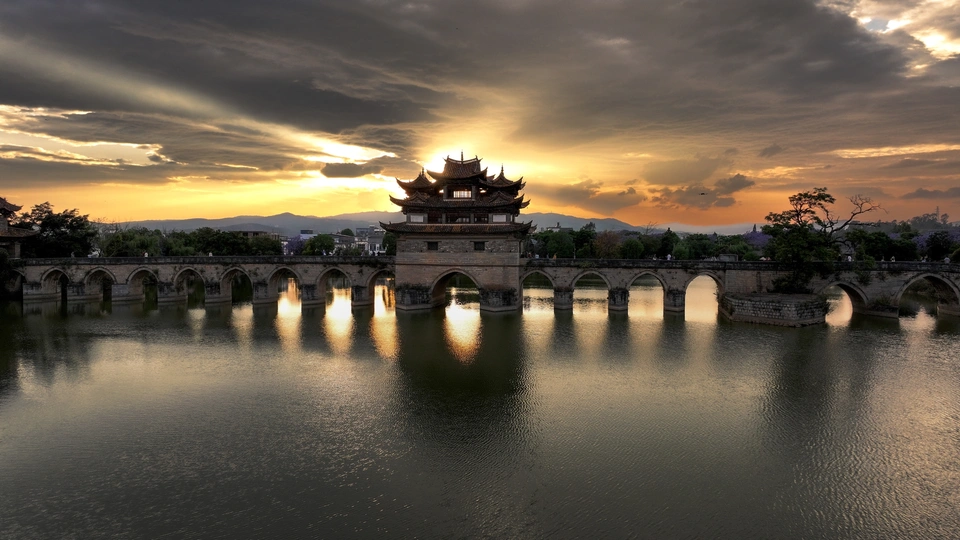 拍摄于云南红河建水县十七孔桥,当时乌云密布,感觉太阳漏不出来了,正当我快要离开时,阳光冲突乌云洒满大地,我立即起飞无人机拍下这震感一刻