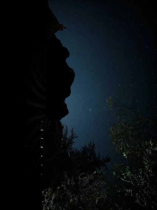 图像介绍: 在静谧的夜空下,古老的建筑与繁星对话,仿佛诉说着时间的无垠。远处的山峦和近处的树木在夜色中交织,如同梦境与现实的边界。这是一个关于时间、形式与存在的沉思空间,邀请观者在这片星辉下,感受宇宙的浩瀚与生命的微光。