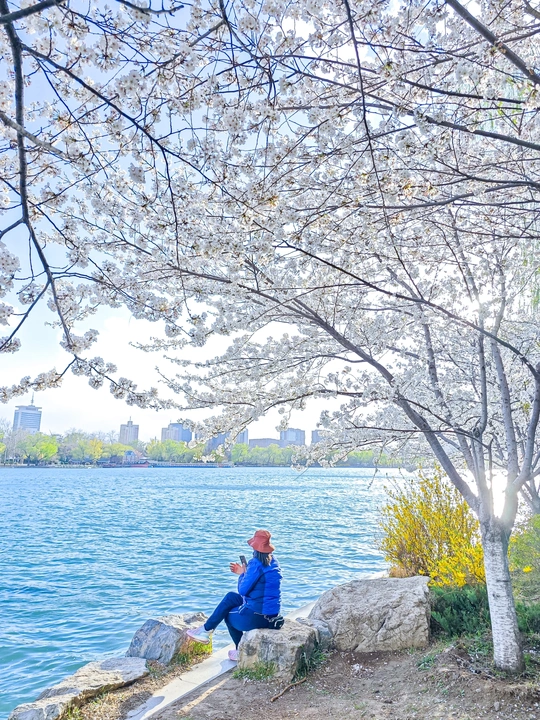 玉渊潭公园,一位票友在樱花树下浅唱低吟,忘却了周围的一切。 shoot on 13ultra