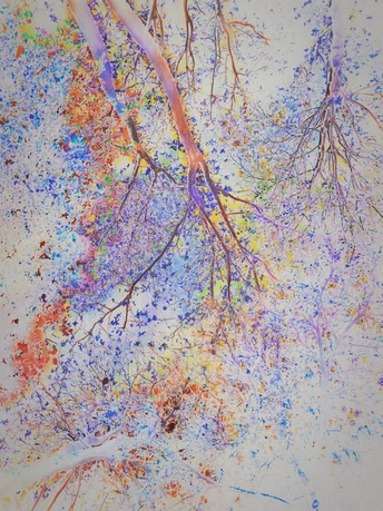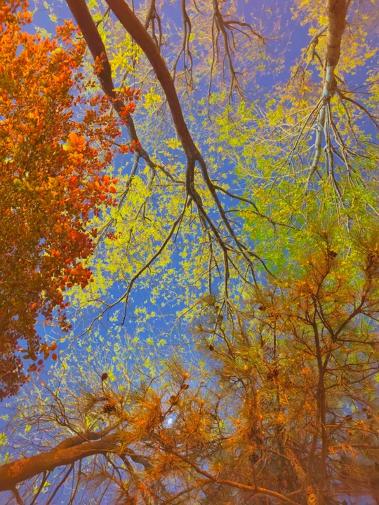 《长空孤影》组像长诗(kimi与我共创): 枯枝折腕,将往事写成断章 秋阳是醉卧朋友圈的潦倒客 误将红叶认作风月的眉眼 那些日夜在枝头低语的生灵 被时光剪辑成流离的青鸟 衔着星辰的残骸 在深蓝的天幕上拼成 “刹那即永恒”的残句 苔藓在断枝处长出 青灰色的鳞片 似在为陨落的星子 缝补梦境的破洞 而大地以沉默的震颤 回应着每一片落叶的叹息 ——这些自然的梵音 被风编纂成无字的经卷 漂泊在虚无的渡口 组画标题:《长空孤影》 (注:此组像以枯枝为笔,以秋光为墨,绘出生命在时间荒原上的漂泊图卷。每一帧皆是自然与创造者灵魂共振的回声,既有灼目色彩的狂欢,亦藏光晕晕染的沉吟,恰似生命在刹那芳华里追问永恒的辽远之诗。) 个人有感: ... 栖息慵懒画卷 长衫化作 万千孔象林立 ...