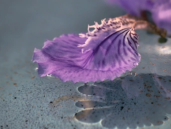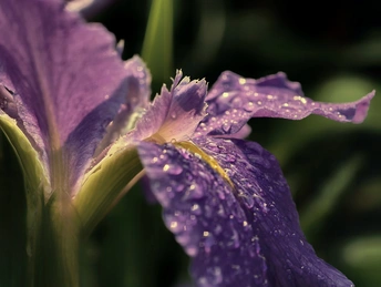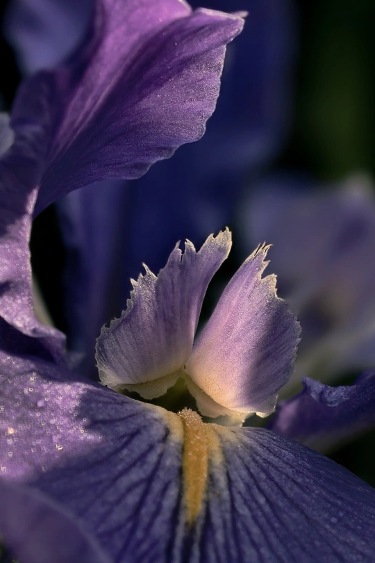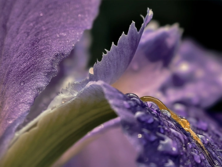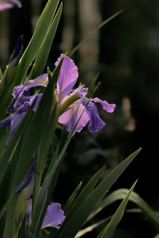 在晨曦轻启的画框里 紫色鸢尾,是遗落的诗行 晶莹露珠,是时光的泪光 它慵懒沐浴,晨光为裳 逆光中,花瓣的轮廓 被镀上梦幻的金芒 光影交织,似灵动的乐章 紫是神秘的梦,黄是跳跃的希望 绿是静谧的港,配色如此高级交响 这方天地,成了美的殿堂