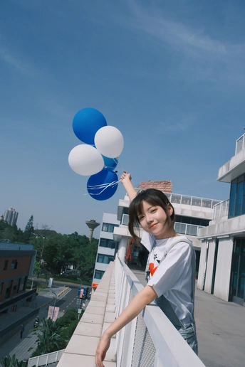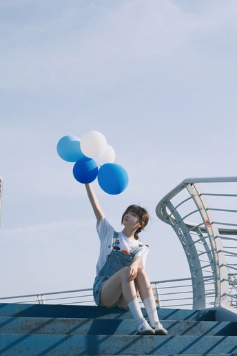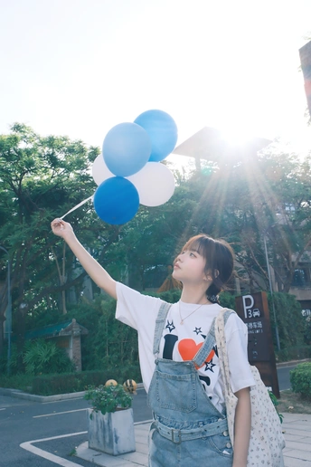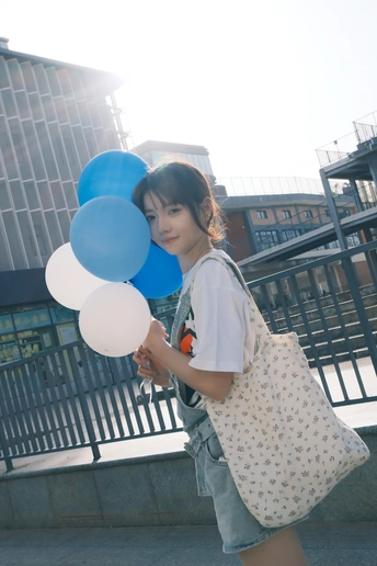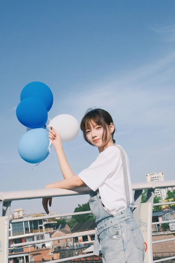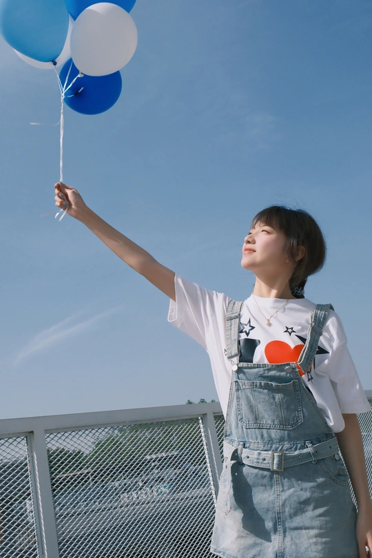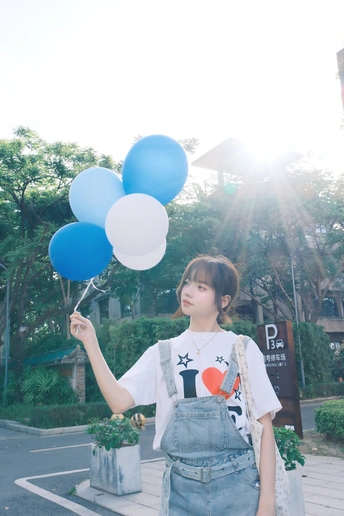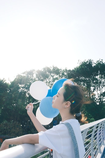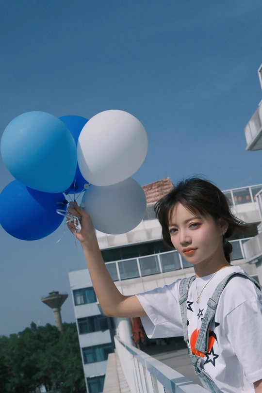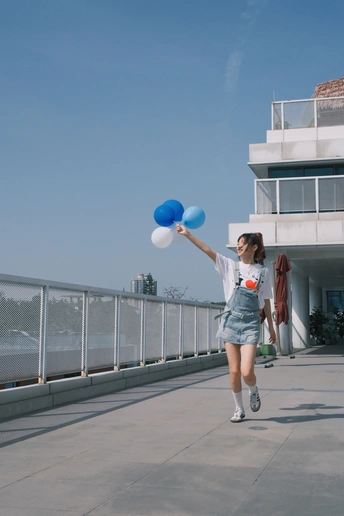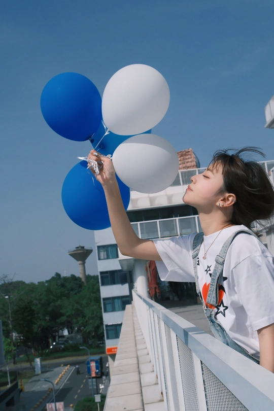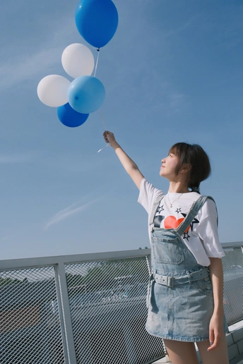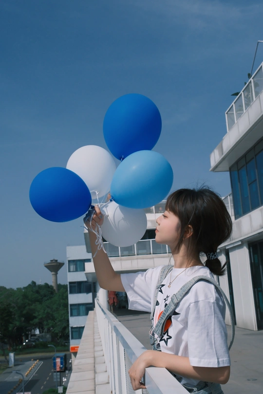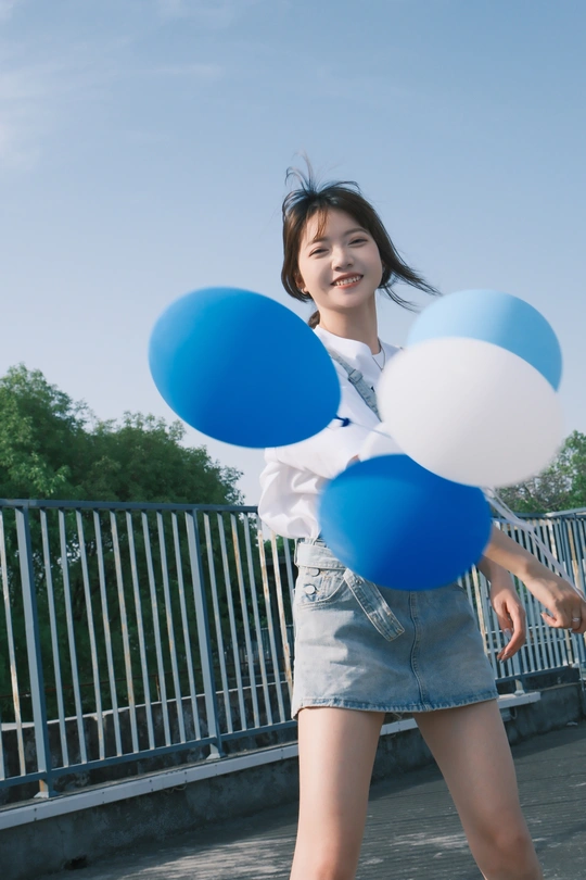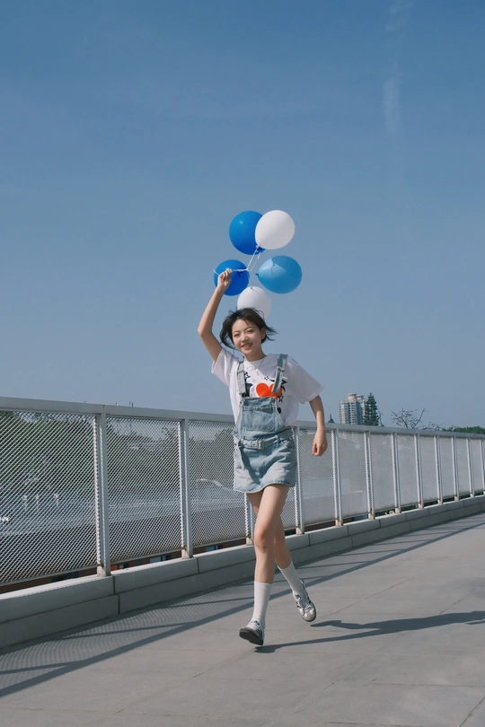 蓝天☀️和气球🎈太配啦🤩 随着气球一起奔跑,太开心了~