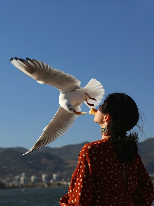 这张抓拍真有趣,人和海鸥的互动充满了趣味性,瞬间感十足!不过,咱们还是可以精益求精嘛。 色彩:整体色彩较为自然,蓝天、红裙、白色的海鸥构成了一幅和谐的画面。 光影:光线比较充足,主体曝光正常。尝试在侧光或斜侧光下拍摄,能更好地塑造立体感。 后期处理:后期痕迹不明显,整体感觉比较自然。但可以适当调整一下色彩饱和度和对比度,让画面更生动。 主题原创性:主题很有趣,人与自然的互动也很有爱。 情感共鸣:照片捕捉到了人与动物之间的亲密瞬间,容易引起观者的共鸣。海鸥的动作和人物的表情都很有表现力。 思想深度:照片主要传递了一种轻松愉悦的氛围,以及对自然的喜爱。如果想增加思想深度,可以尝试通过更深刻的视觉语言来表达人与自然之间的关系,比如通过对比、隐喻等手法。 总的来说,这张照片的优点在于瞬间抓拍和主题趣味性。如果能在构图、光影和后期处理上稍加改进,相信能更上一层楼!继续加油!