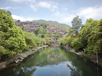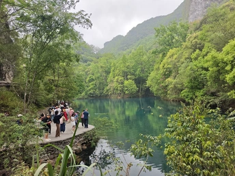 贵州,宛如一块镶嵌在华夏大地西南的璀璨宝石,散发着独有的迷人魅力,令人心驰神往。 踏入贵州,首先映入眼帘的是它那如诗如画的自然风光。梵净山拔地而起,云雾缭绕,仿若仙境,古老的寺庙在山林间若隐若现,诉说着岁月的故事;黄果树瀑布气势磅礴,如银河落九天,巨大的轰鸣声震耳欲聋,溅起的水花如烟如雾,在阳光的照耀下,形成一道道绚丽的彩虹;荔波小七孔的湖水碧绿如翡翠,古桥横跨其上,宁静而优美,漫步其间,仿佛走进了世外桃源。 贵州还是一个多民族聚居的省份,各民族文化在这里交相辉映,共同编织出了一幅色彩斑斓的民族风情画卷。苗族的芦笙舞欢快活泼,舞者身着绚丽的服饰,银饰叮当作响;侗族的大歌婉转悠扬,多声部的合唱无伴奏却和谐动听,仿佛是大自然的天籁之音;布依族的八音坐唱,乐器多样,曲调优美,演绎着生活的喜怒哀乐。每逢节日,各民族的人们身着盛装,载歌载舞,热闹非凡。
