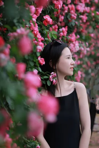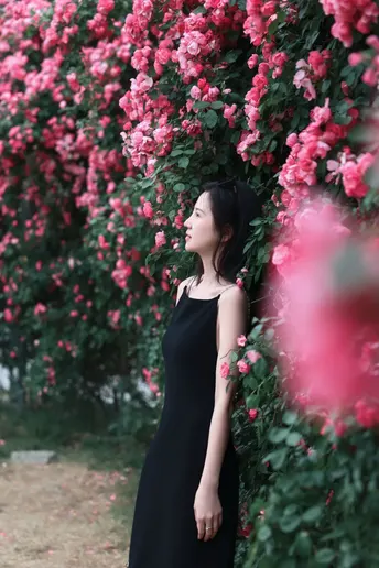 蔷薇花开花美人