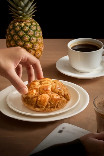 在静谧的时光里,手轻轻触碰着外皮酥脆的菠萝包,身旁是散发着醇厚香气的咖啡,还有新鲜的菠萝。这一刻,无需匆忙,只需慢慢品味这简单而美好的餐点,让身心在这片刻的悠闲中得到慰藉。
