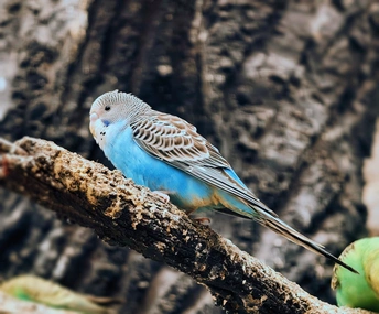 一只色彩斑斓的虎皮鹦鹉静栖于枝头,蓝色的身躯搭配棕白相间的羽翼,精致又灵动。它似在沉思,又似在张望,于斑驳树影间,自成一幅悠然的自然画卷,那小小的身姿,藏着大自然的奇妙与温柔。