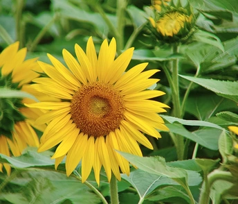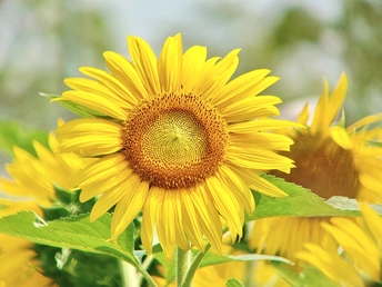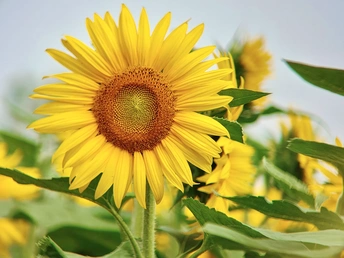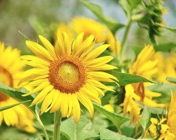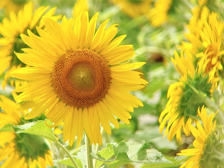 向日葵,大自然中的阳光使者,以无尽的热情追逐着光明。它们绽放出耀眼的金黄,如同夏日里最灿烂的笑容,传递着温暖与希望。在广袤的田野上,它们汇聚成一片片金色的海洋,随风摇曳,仿佛在诉说着对生命的热爱与执着。向日葵,是坚韧与乐观的象征,永远向着光明,绽放自我。
