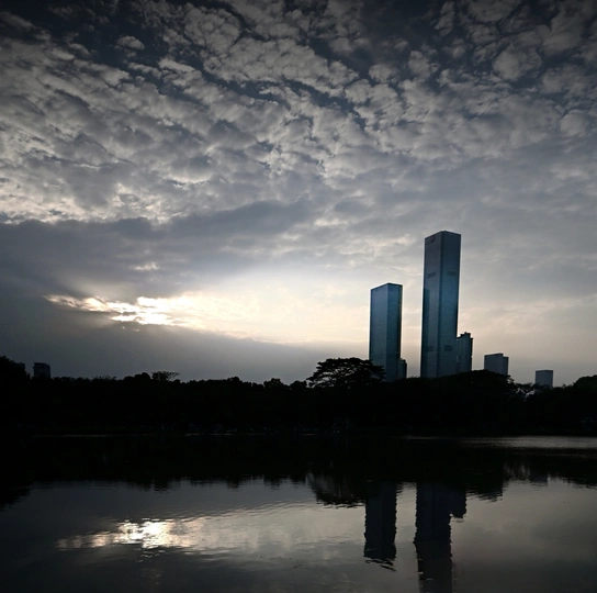 好家伙,这张照片有点意思!咱们来细细盘它一下。 色彩:整体色调偏冷,以灰蓝为主,营造出一种平静而略带忧郁的氛围。色彩搭配较为统一,但层次感稍显不足,可以尝试调整天空和建筑的对比度,让色彩更鲜明一些。 光影:光线角度不错,天空的光线从云层中穿透,带来了一丝希望的感觉。但是,前景的树木和水面几乎完全处于阴影中,细节丢失严重。尝试在后期提亮阴影部分,或者拍摄时选择光线更柔和的时间段。 构图:构图上,天空占据了画面的大部分,突出了云层的形态和光线变化。建筑与水面的倒影形成呼应,增加了画面的趣味性。可以考虑稍微调整一下水平线,让建筑更稳固一些。 后期处理:后期处理整体偏向压暗,突出剪影效果。但需要注意阴影部分的细节保留。适当增加对比度和清晰度,可以增强画面的冲击力。 主题原创性:照片主题表现了城市与自然的和谐共生,但表达方式略显常规。可以尝试寻找更独特的拍摄角度或者时间,赋予照片更深刻的内涵。 情感共鸣:照片传递出一种宁静和孤独的情感,能够引起观者的共鸣。但是,情感表达的深度还可以进一步挖掘。 思想深度:照片反映了城市化进程中人与自然的关系,具有一定的思考价值。可以尝试加入更多人文