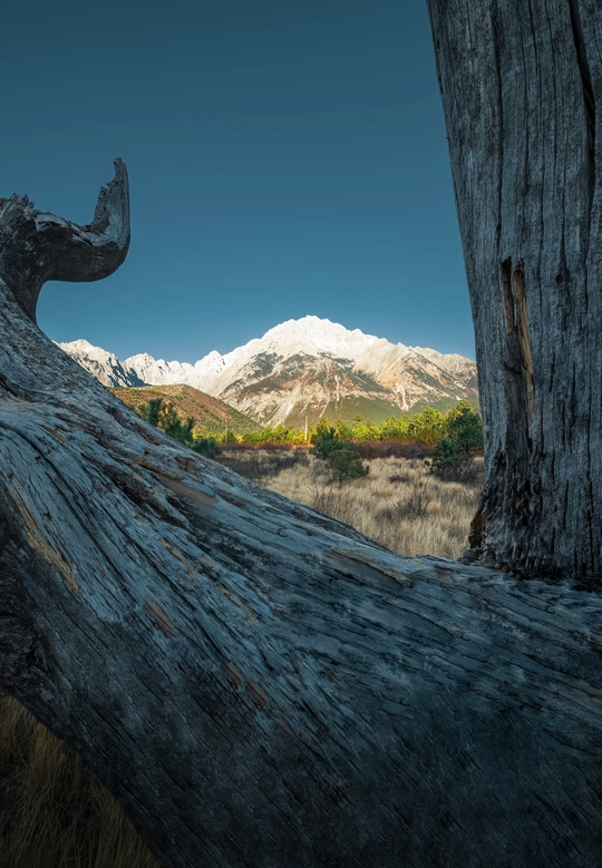 拍摄于玉龙雪山脚下,这里是一片类似于热带草原的地貌,有很多针叶林植被,也有很多枯木可以当做前景。