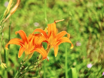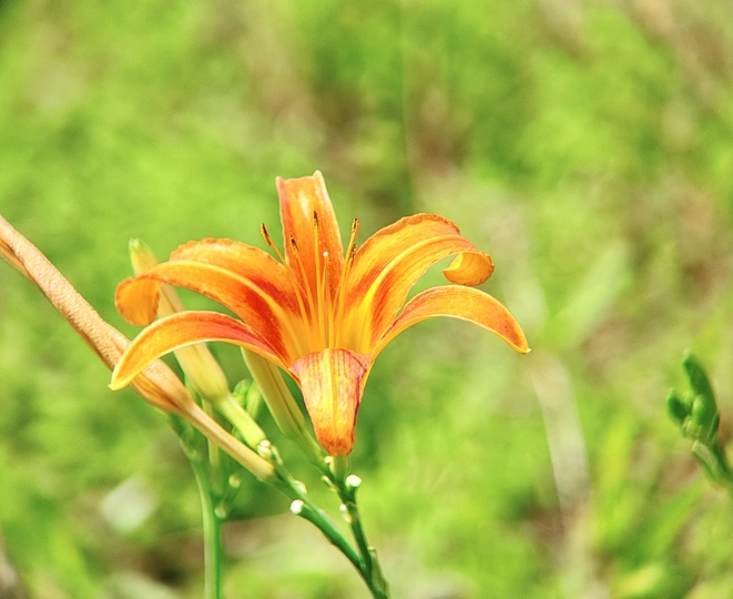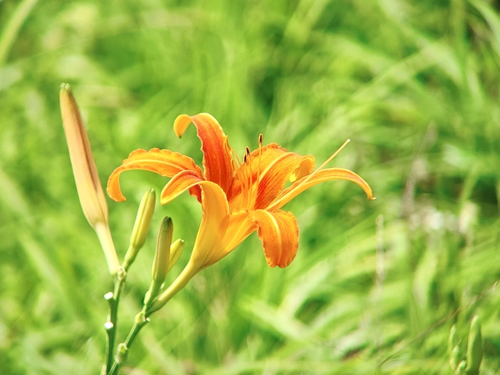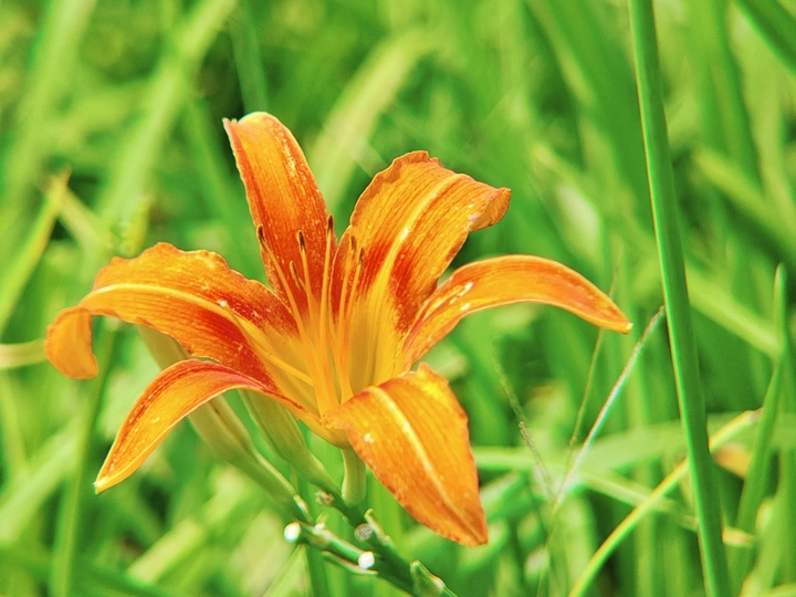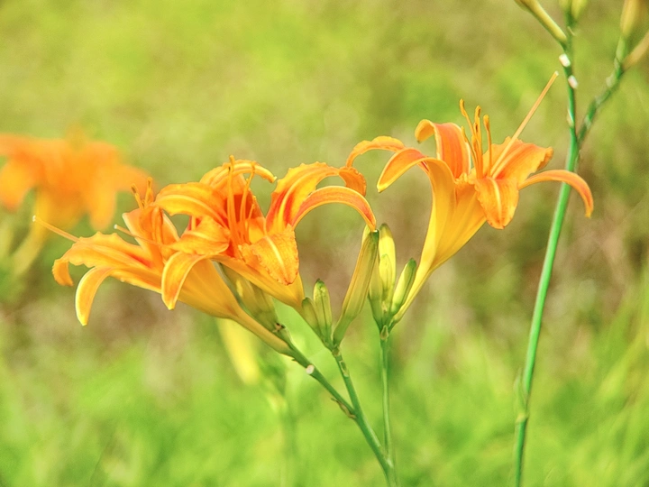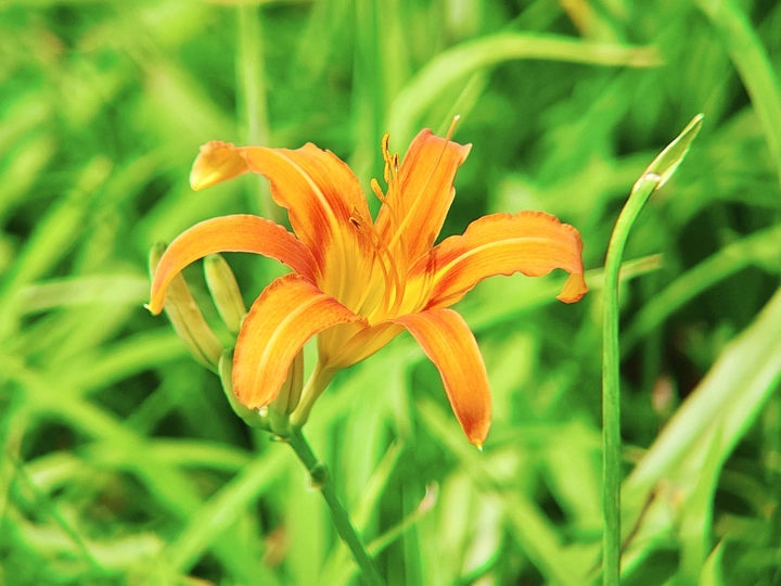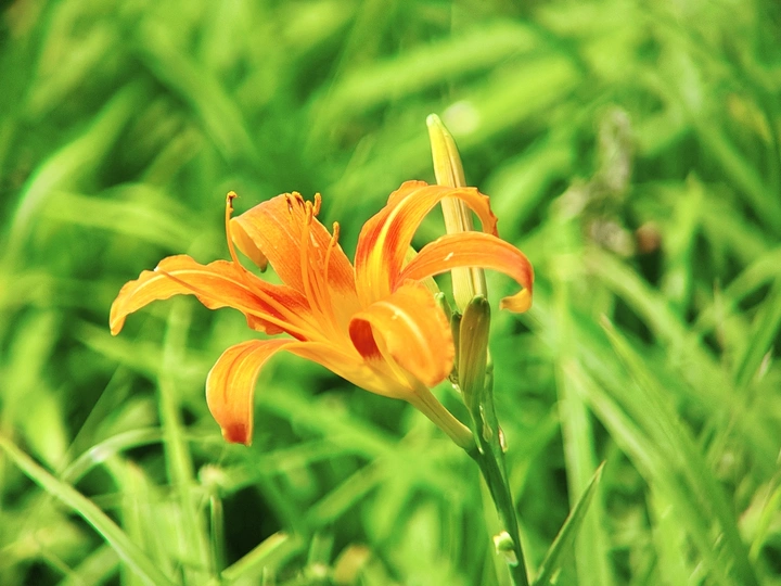 在一片翠绿的世界里,萱草花悄然绽放。橙黄的花瓣轻盈舒展,似蝴蝶翩翩起舞。细长的花蕊俏皮地探出头,在微风中轻轻颤动。它没有牡丹的华贵,却有着别样的温柔。静静立在草丛,散发着淡雅的气息。萱草含情,如母亲的目光,默默陪伴,给予温暖与安宁。