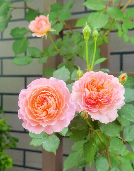 这两朵月季花紧挨在一起,像极了亲密的两姊妹。这个品种的月季花的花瓣层次好多啊。另外一朵也拍一下,省的它太孤单了😂