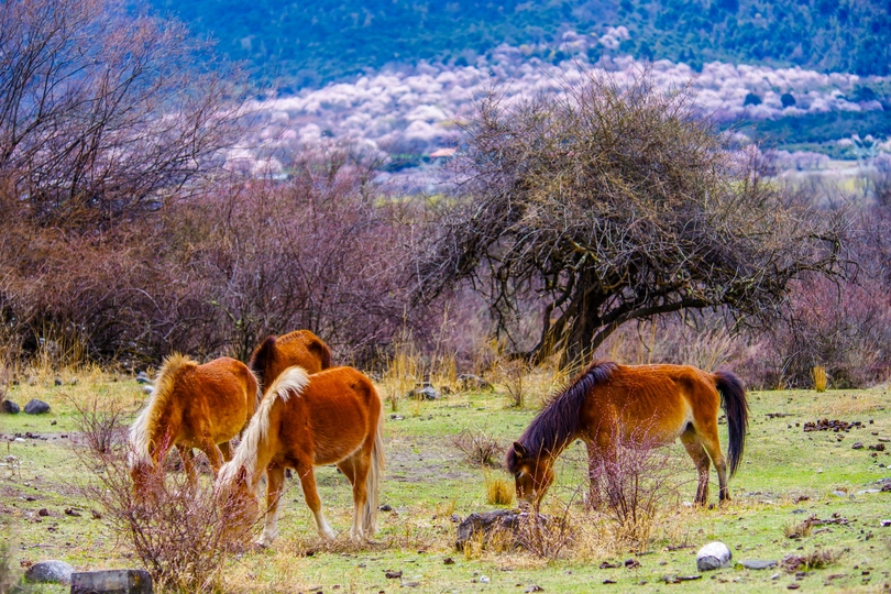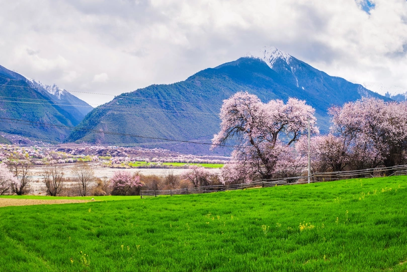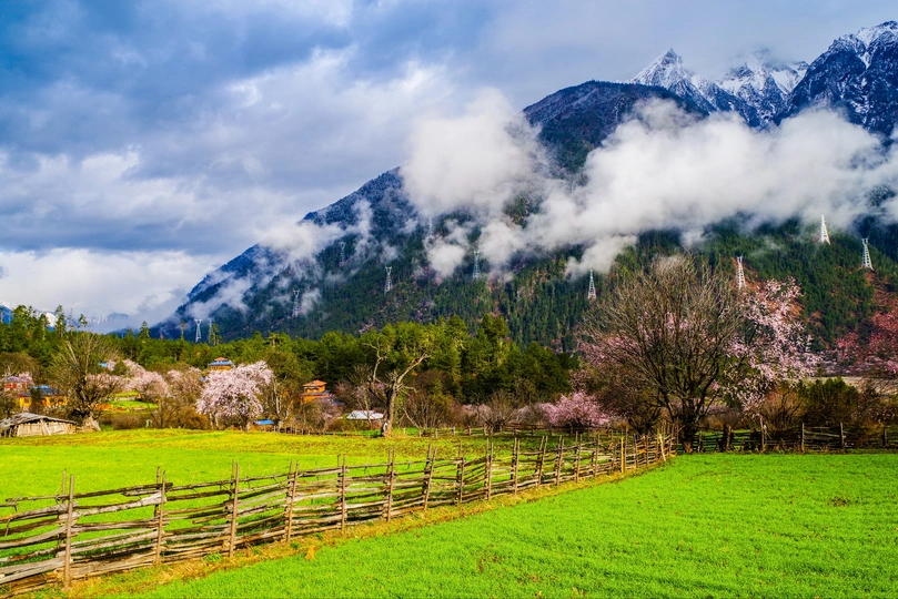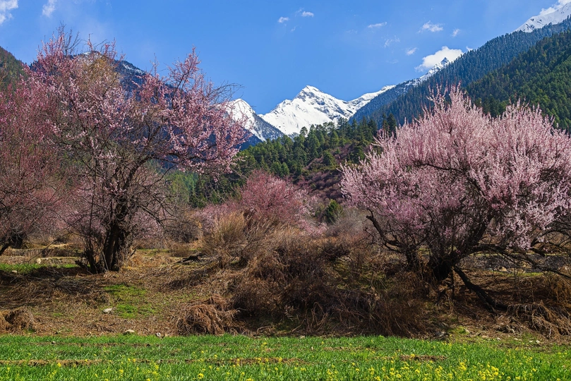 春天西藏林芝桃花盛开