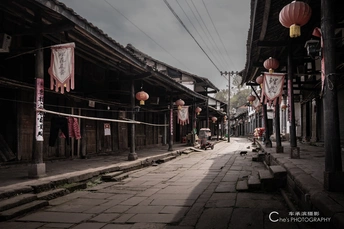 古色古香的街道,红灯笼点缀,仿佛穿越时空-四川.广安肖溪古镇