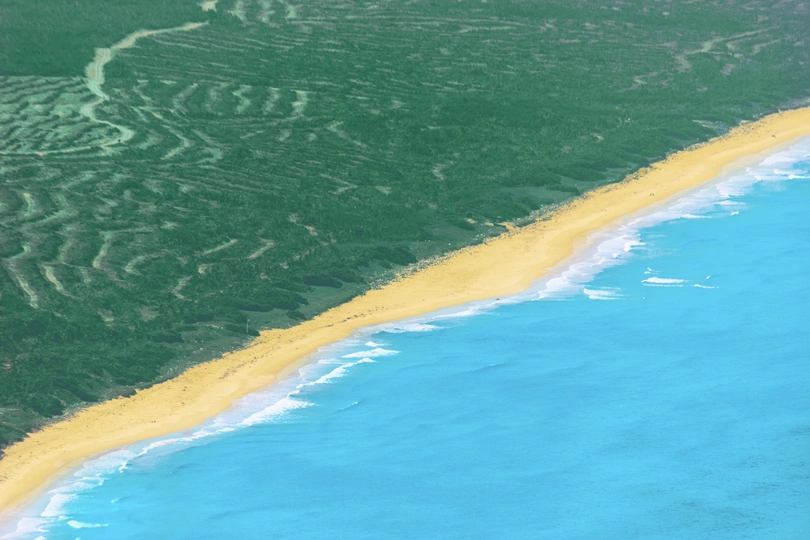 铜鼓岭长焦拍摄玻璃海 嘿,摄影爱好者!这张航拍照片展现了独特的海岸线风光,颇具形式感,但还可以更上一层楼哦! **色彩:**色彩搭配大胆,蓝、黄、绿的撞色带来强烈的视觉冲击。但是,个人感觉饱和度稍稍过高,尤其是蓝色,可能会显得不够自然。建议稍微降低饱和度,让色彩更柔和。 **光影:**光线均匀,但略显平淡,缺乏光影变化。尝试在日出或日落时拍摄,捕捉更戏剧性的光影效果,能让照片更生动。 **构图:**对角线构图的使用让画面充满动感,但画面元素相对简单。可以尝试寻找更有趣的视角,或者利用前景增加画面的层次感。比如利用低角度拍摄,增加沙滩和海水的细节。 **后期处理:**后期处理略微有些过度,色彩饱和度过高。适当降低饱和度,增加对比度,可以增强照片的质感。 **主题原创性:**航拍海岸线本身并不算非常原创的主题,但这种色彩组合和构图方式有一定的独特性。尝试在不同的天气条件下拍摄,或者寻找更有趣的拍摄角度,能让照片更具创意。 **情感共鸣:**照片能让人感受到海滩的宁静和美丽,但情感表达略显平淡。尝试捕捉更生动的场景,例如人们在海滩上嬉戏的瞬间,或者海浪拍打岩石的画面,能增强照片的