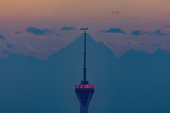 傍晚拍到339熊猫塔和幺妹峰同框的画面
