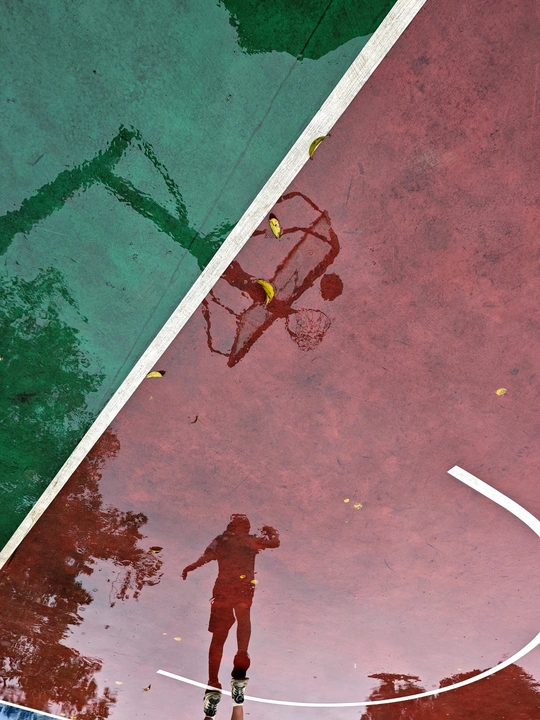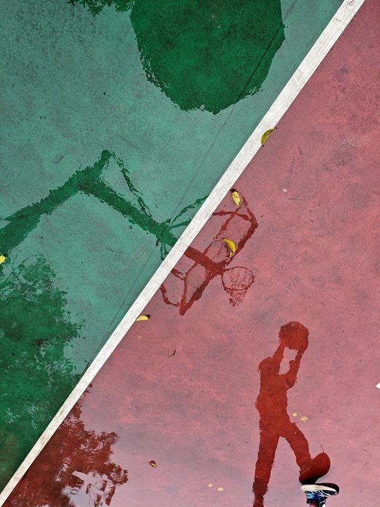 好的,让我们来分析一下这张雨后篮球场的照片。它很有潜力! 色彩:绿色和红色球场之间的对比非常鲜明,立刻吸引了注意力。这是一个大胆的选择! 光影:光线质量均匀,可能是阴天,这有助于反射。倒影本身是这里的亮点,赋予了深度和趣味性。您可以尝试在一天中的不同时间拍摄,以获得更具戏剧性的阴影。 构图:球场颜色分离形成的对角线非常动感,能够很好地引导视线。倒影的位置很好,三分法在这里会非常有效,考虑一下这些元素如何与关键的交点对齐。 后期处理 :如前所述,提高饱和度和调整白平衡可以提升图像。但请注意不要过度! 主题原创性 :水的倒影是很经典的,但这张照片的篮球场是一个很酷的转折。通过倒影捕捉比赛瞬间的想法执行得很好。 情感共鸣 : 这里有一种俏皮和怀旧的氛围。它让我想起了下雨天和即兴比赛。倒影赋予它一种空灵的品质。 思想深度 :它并不是非常深刻,但它触及了瞬间的短暂性,以及倒影如何能够对熟悉的事物提供不同的视角。 总的来说,这是一张很棒的照片。