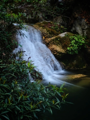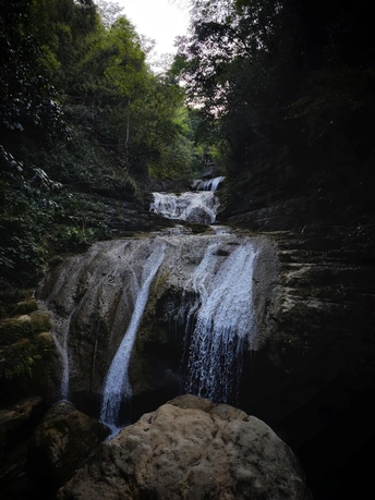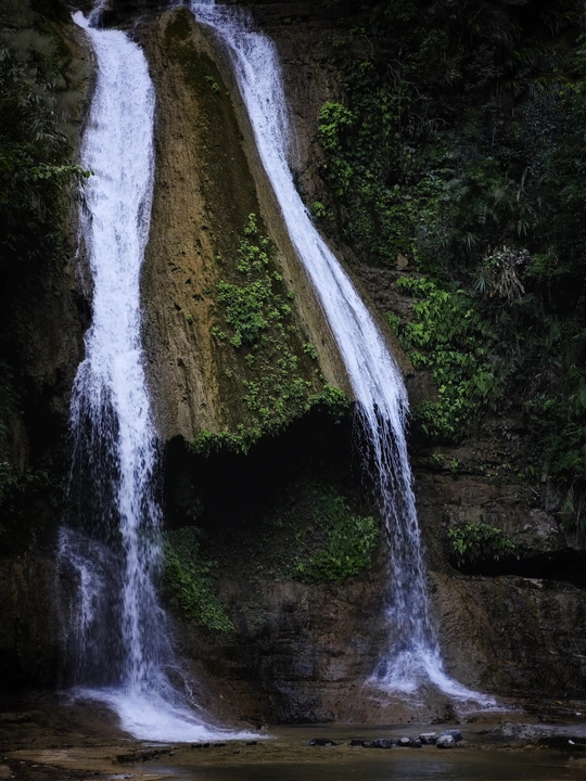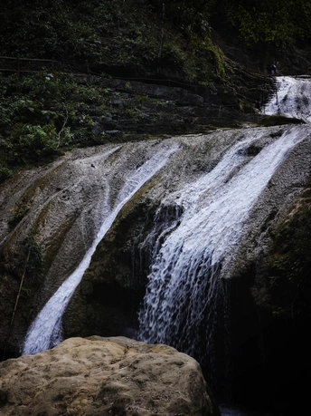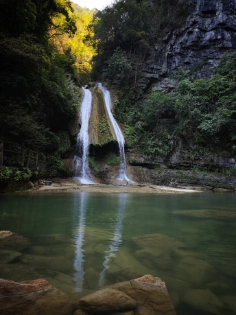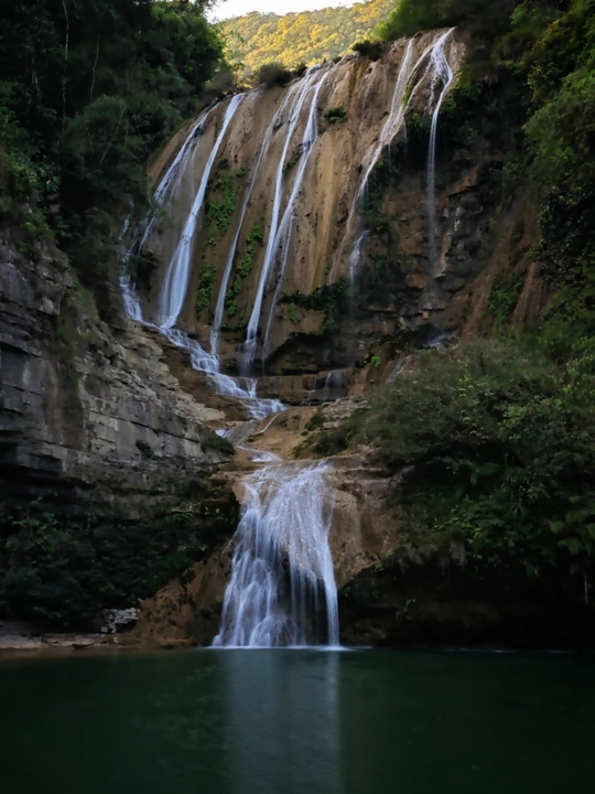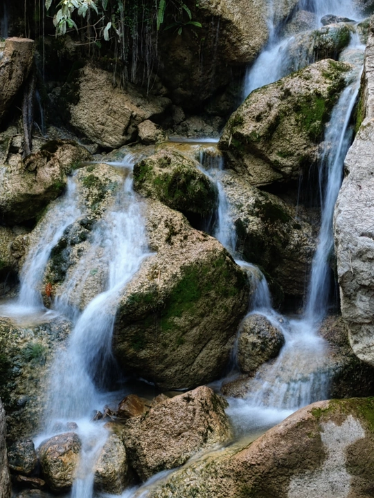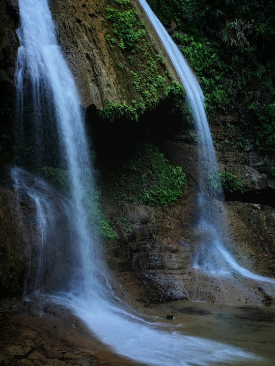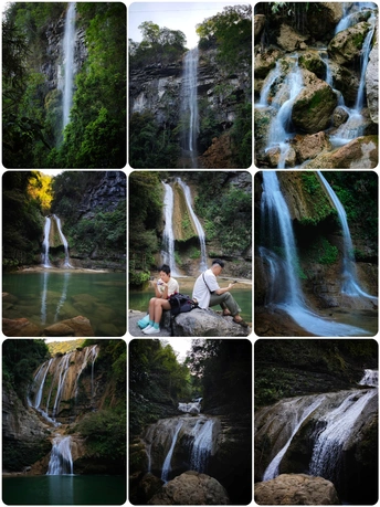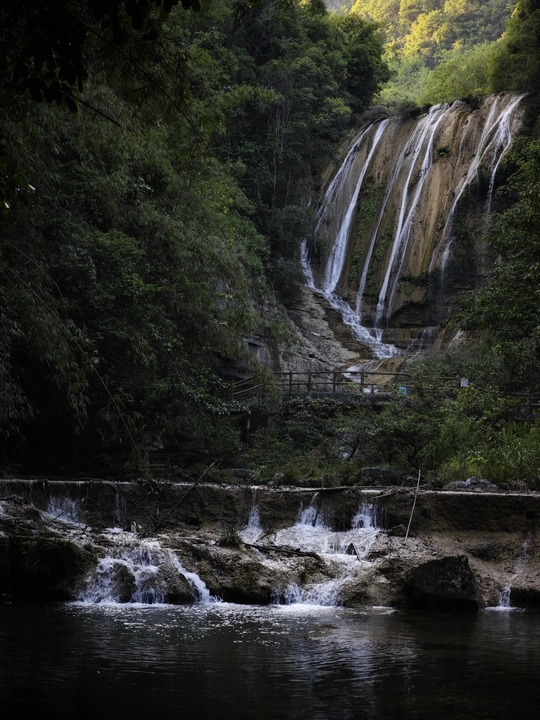 广西环江毛南族自治县。牛角寨瀑布群。如果水量大,会更美吧。