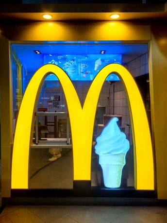 晚上的麦记,极具辨识度的金拱门标记十分显眼,夏天来了,冰淇淋就是这个季节最出挑的显眼包🤩