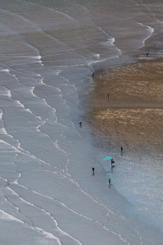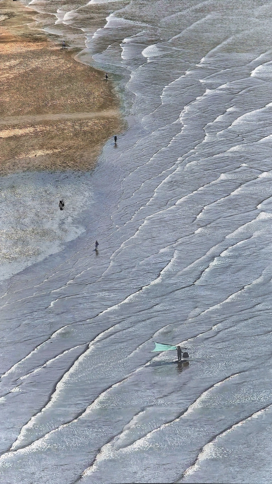 退潮时,大海悄悄藏起宝藏。 拎一只小桶,踩在柔软的沙上, 撬开礁石的秘密,捉住跳跳鱼与害羞的蟹。 浪花带走脚印, 却留下满兜的惊喜—— 原来最富足的快乐,是潮汐赐予的零成本浪漫。